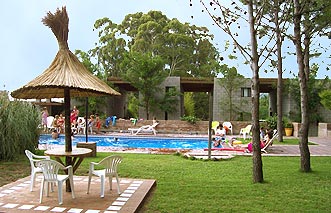 complejo ofrece pileta (5x15 mts) con amplio solarium y vista al lago, bajada propia a la playa y la